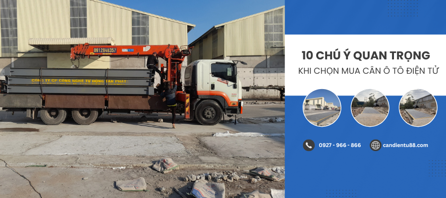 10 chú ý quan trọng khi chọn mua cân ô tô điện tử: Lựa chọn tải trọng tối đa của cân, lựa chọn kích thước bàn cân phù hợp, lựa chọn thiết bị cân, lựa chọn mô hình lắp đặt cân...