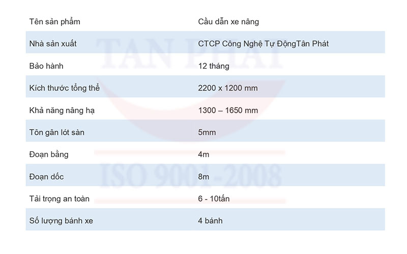Thông tin cơ bản về cầu dẫn xe nâng lên container, sản xuất và thiết kế bởi Tân Phát.
