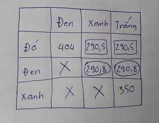 Sau đó thực hiện loại bỏ 2 cặp giá trị gần giống nhau và có giá trị thấp hơn.