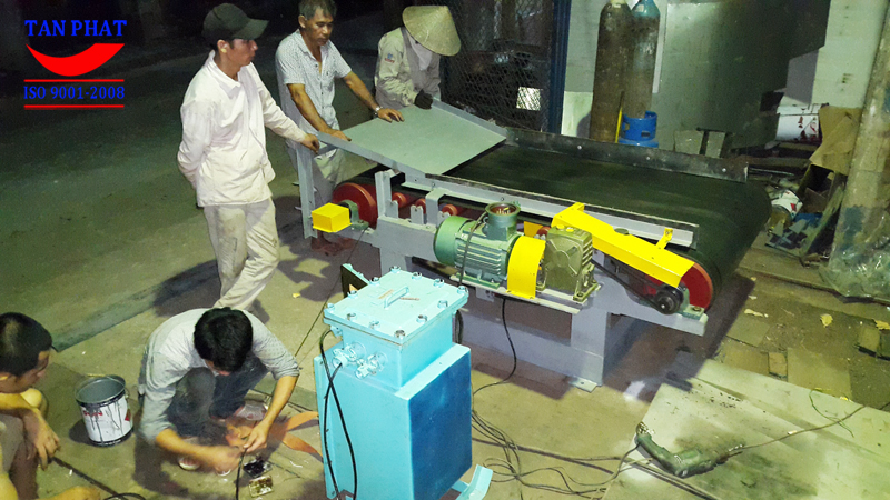 Ảnh chụp thực tế sản xuất băng truyền hệ thống cân băng định lượng tại xưởng cơ khí.