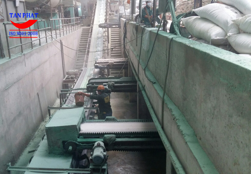 Băng tải định lượng nguyên liệu nhà máy gạch đang trong quá trình hoạt động