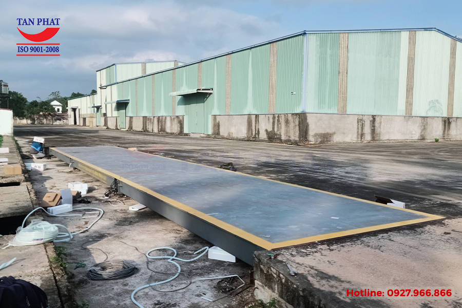 Hình ảnh bàn cân đang trong quá trình thi công lắp đặt.