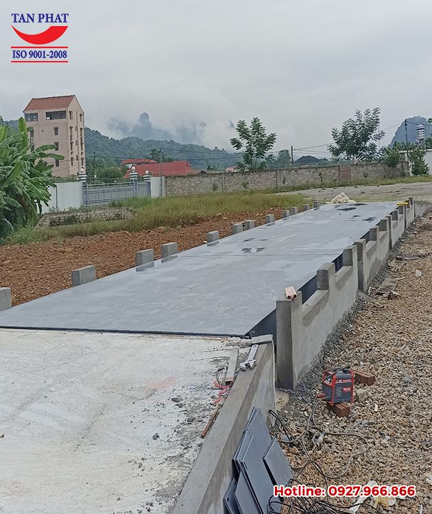 Bàn cân điện tử 150 tấn dài 18m kết cấu bê tông cốt thép lắp nổi với 03 module cân.