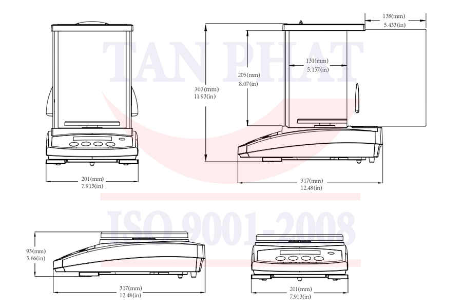 Bản vẽ cơ khí cân phân tích 3 số lẻ Ohaus PR423/E