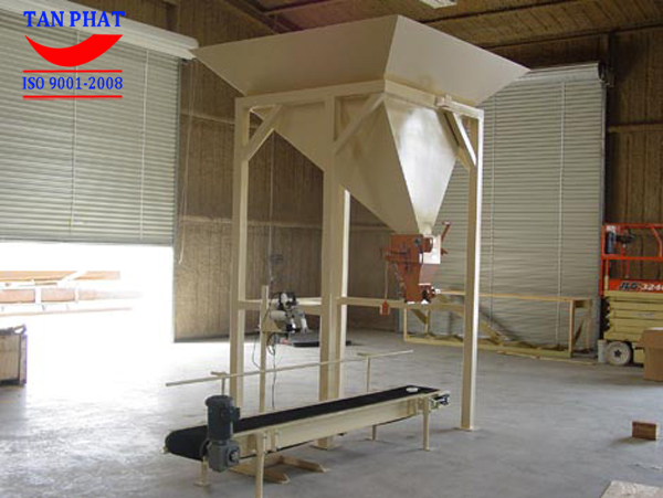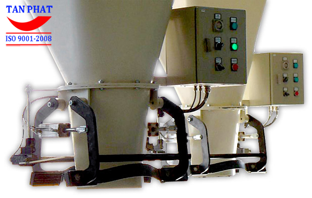 Hình ảnh phiễu xả liệu, van kẹp bao cân đóng bao.