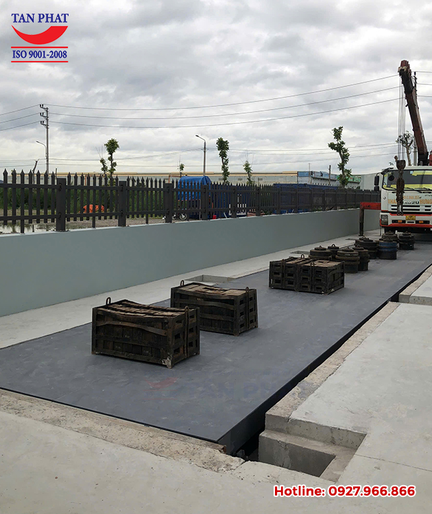 Đây là hình ảnh trạm cân ô tô điện tử 80 tấn kích thước 18x3m được hãng Cân Tân Phát lắp đặt kiểu chìm tại huyện Hải An, Hải Phòng.