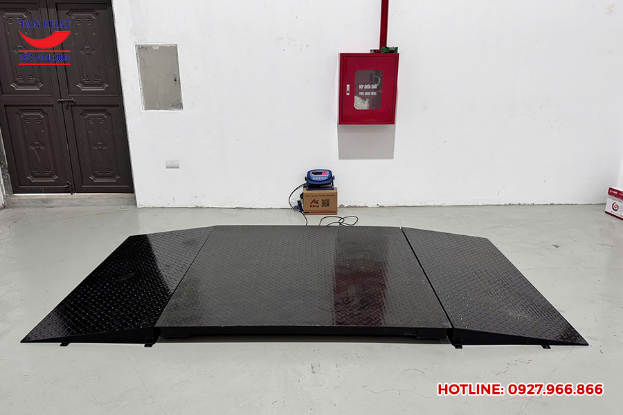 Thiết kế bền bỉ, chính xác - Cân sàn điện tử có dốc lên xuống được sản xuất bởi chính hãng Cân Tân Phát với tải trọng tối đa từ 1-5 tấn (như hình là cân 3 tấn), bảo hành 1 năm.