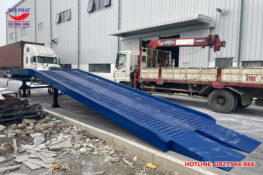 - Thiết kế chống trượt tốt, độ dốc phù hợp đảm bảo an toàn cho xe nâng di chuyển lên xuống cầu dẫn thực hiện bốc xếp hàng hóa.
