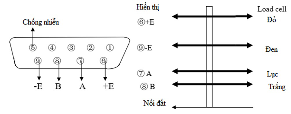 Đầu cân kỹ thuật số D2002E kết nối với loadcell qua cổng RS232 loại 9 chân. Để đảm bảo load cell và đầu cân được kết nối hiệu quả.