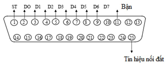 Đầu cân D2002E kết nối với máy in thông qua cổng RS232 loại 25 chân.