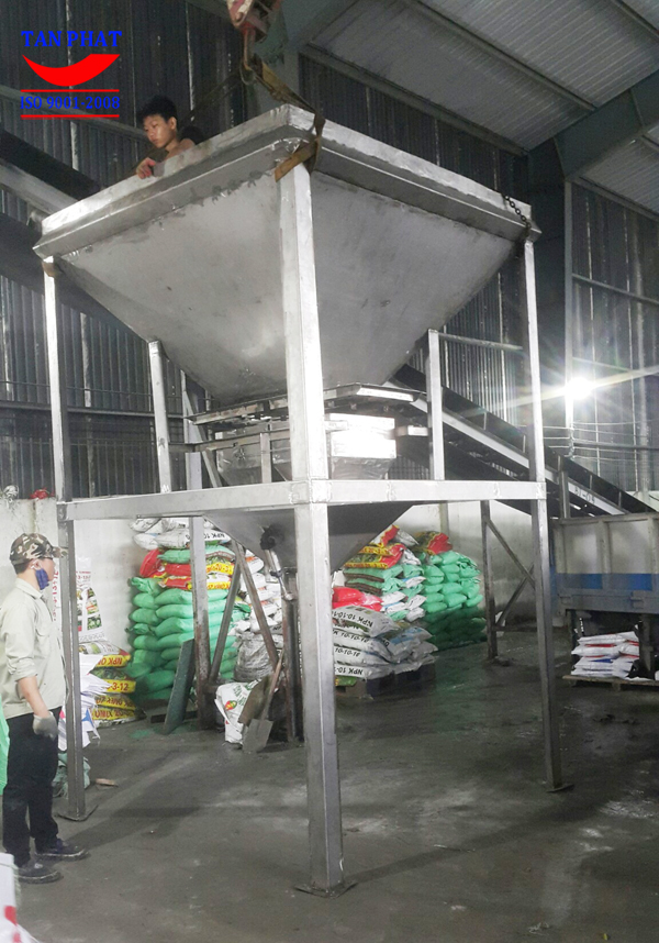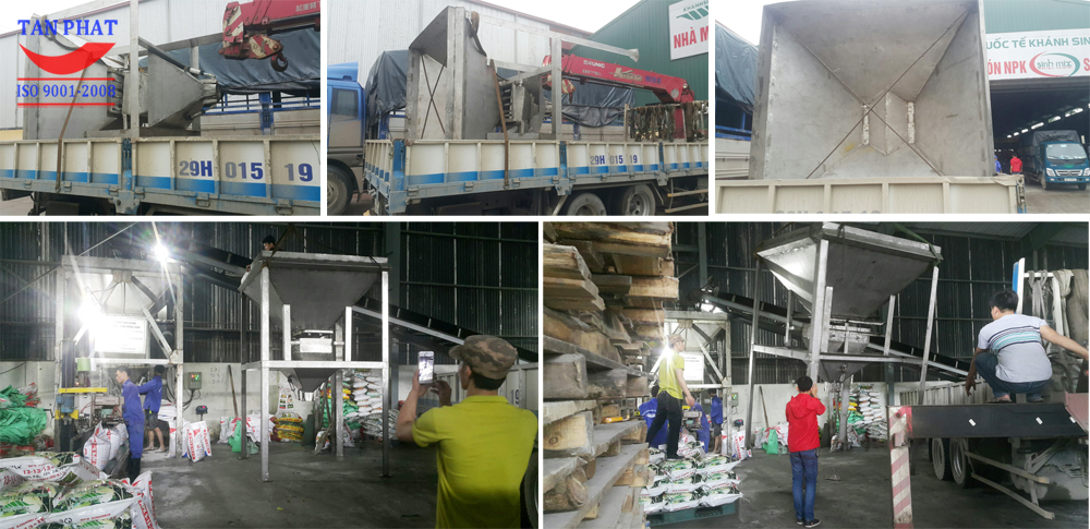 Dây truyền cân đóng bao phân bón NPK do công ty Tân Phát triển khai lắp đặt hoàn thiện 2017 bến phải, bên trái là hệ thống cân đóng bao cũ do Tân Phát cung cấp trước.