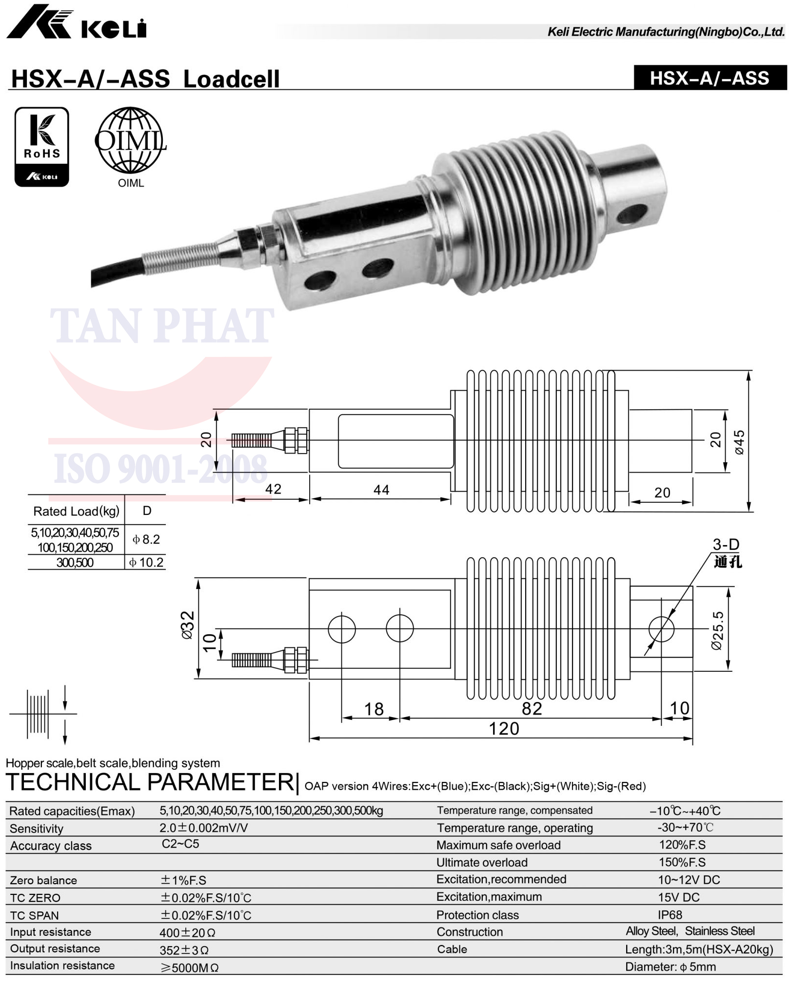 >> Tham khảo các dòng LOADCELL HSX KELI tải trọng khác.