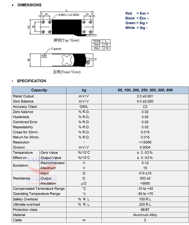 Loadcel NA4 Mavin là cảm biến lực dạng thanh có thiết kế đáp ứng các yêu cầu nghiêm ngặt về độ chính xác. Với mức cân đa dạng từ 60kg đến 800kg, cảm biến lực NA4 Mavin thường dùng trong các ứng dụng cân bàn, cân sàn, cân đóng bao....