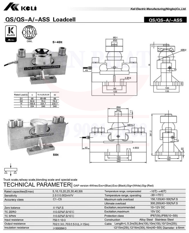 Loadcell QSA 30t Keli là dòng cảm biến lực analog, sản xuất chính hãng Keli, chuyên áp dụng cho các ứng dụng cân ô tô điện tử hiện nay, đặc biệt là dòng cân 80 tấn và cân 100 tấn.