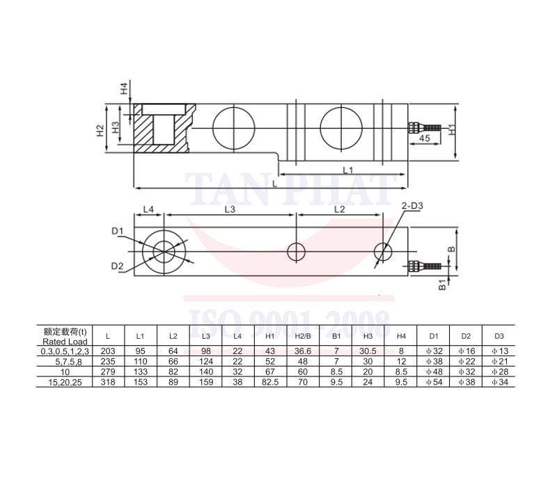 | Tải trọng | 0.3, 0.5, 1, 2, 3, 5, 7.5, 8, 10, 15, 20, 25 tấn |