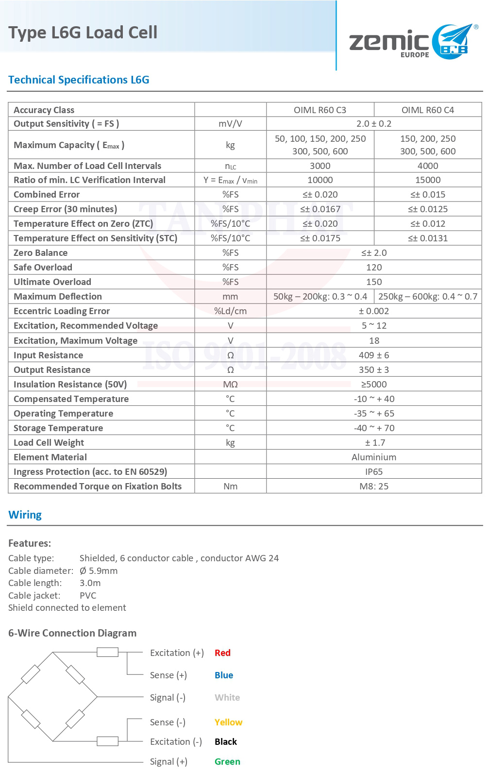 | Cấp chính xác | OIML R60 C3-C4 |