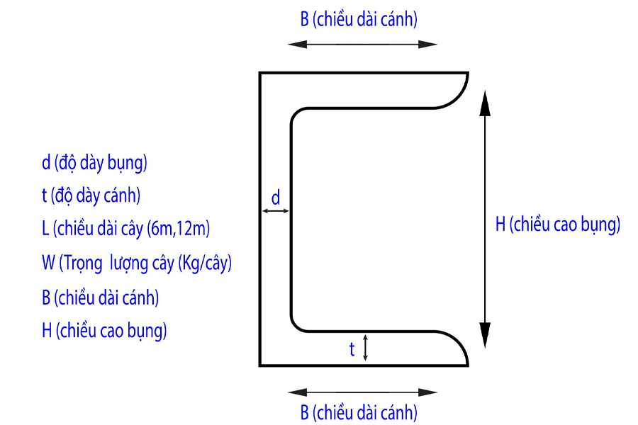 Thép hình chữ U được cung cấp với đa dạng kích thước, khối lượng khác nhau. Đặc trưng của loại thép này là phần lưng thẳng (gọi khác là phần thân) cùng với hai phần kéo dài ở trên và dưới (gọi khác là phần cánh).