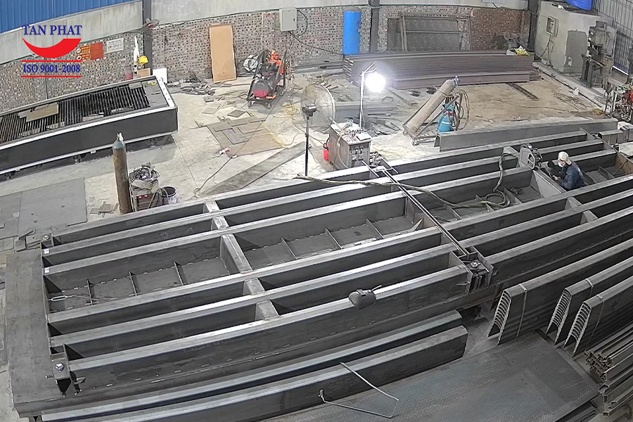 - Cấu trúc mỗi module thép bao gồm 6 dầm dọc, 1 dầm ngang, sản xuất từ Thép U300 dập tiên tiến.